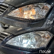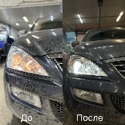 Заменили штатные галогенные линзы на Bi-LED с широкой СТГ. Сделали внутреннюю и внешнюю полировку фар. Отрегулировали фар
