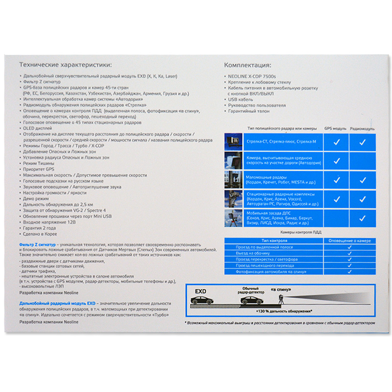 Neoline X-COP 7500s – это разработка ведущих корейских специалистов в области автомобильной электроники, направленная на повышение безопасности водителя.